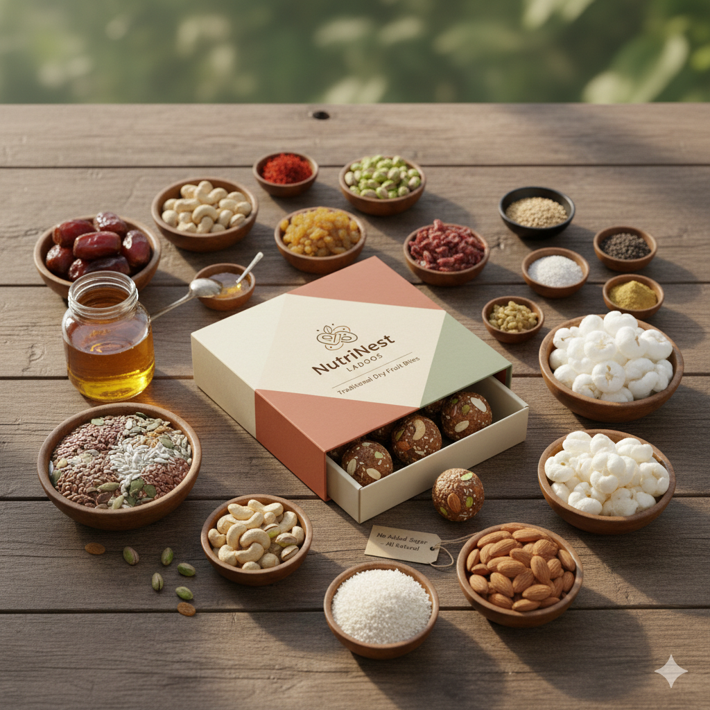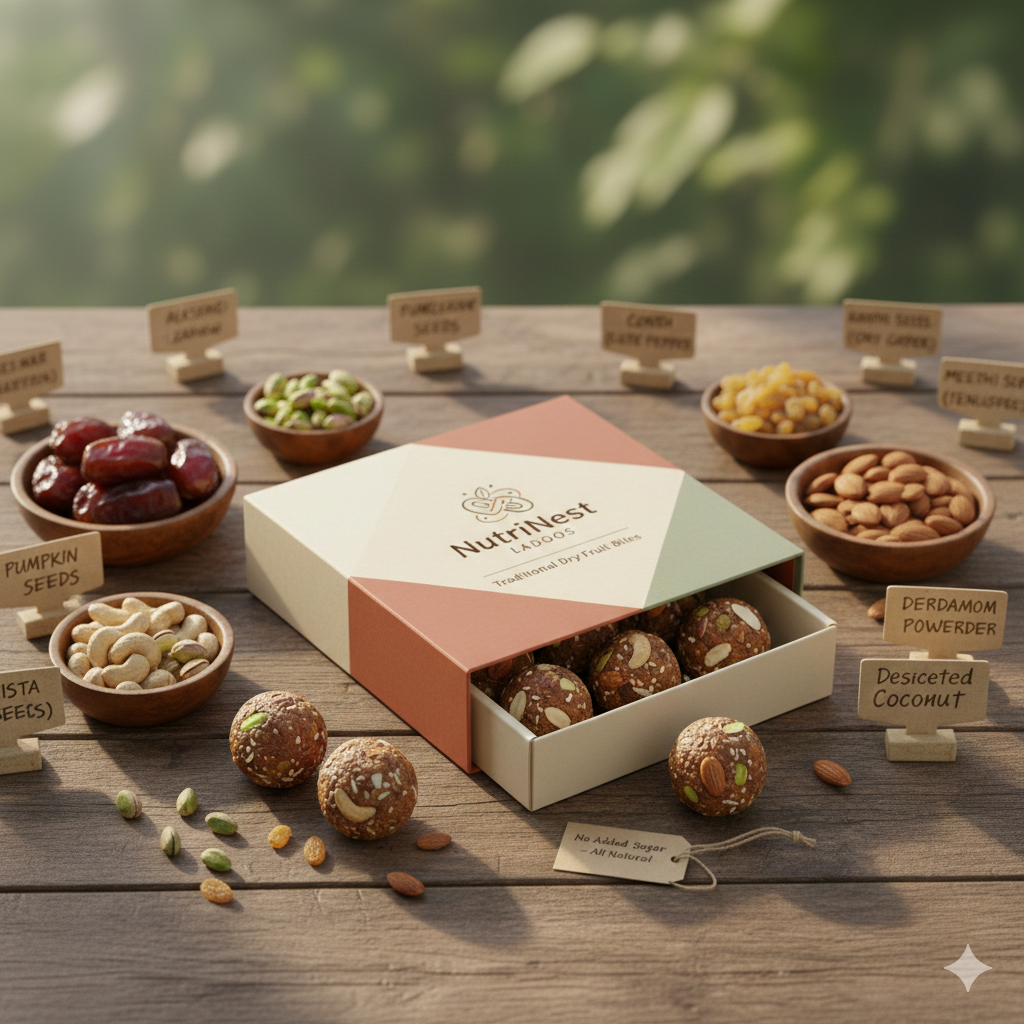 The Dry Fruit Laddoo is a rich blend of carefully selected nuts and natural ingredients, shaped into a nourishing, energy-packed sweet. Made in small batches for freshness and authentic taste, itβs a wholesome choice perfect for daily snacking or festive gifting.